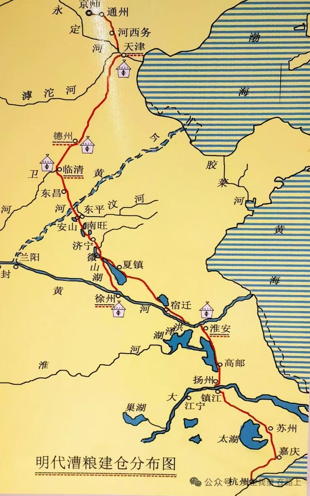 从这张明代漕粮建仓分布图中既可以看到运河沿岸漕仓的布局,又显示了临清作为隋唐大运河(卫河)与京杭大运河交汇点的重要位置。