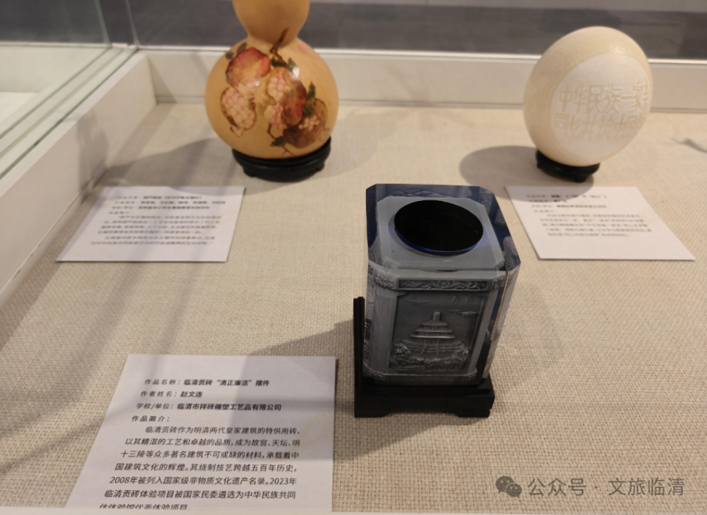 9月30日上午,聊城市“道中华杯”铸牢中华民族共同体意识文创作品展在孔繁森同志纪念馆开展,临清市共有5件贡砖文创景观摆件入选参展。