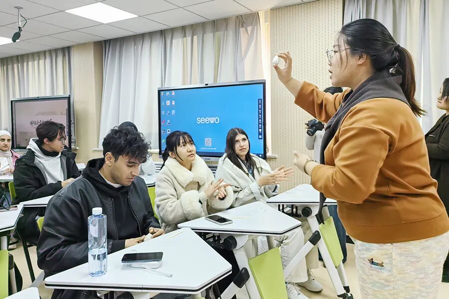 活动伊始,王硕为国际学生介绍了面塑艺术。她娓娓道来,讲述了这门历史悠久的技艺如何传承发展、成为中华民间艺术瑰宝的故事,引发了国际学生浓厚的兴趣。