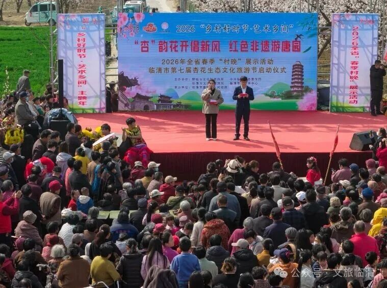 春分刚过,花开正好。3月21号下午,2026年全省“春季村晚”展示点暨“乡村好时节·艺术乡间”主题年——临清市第七届杏花生态文化旅游节,在唐园镇瑶坡村千亩杏林盛大开幕!