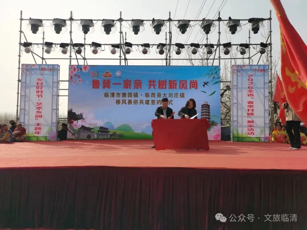 本届杏花节最受关注的,当属唐园镇与河北省临西县大刘庄镇联合开展的“跨省移风易俗共建活动”。