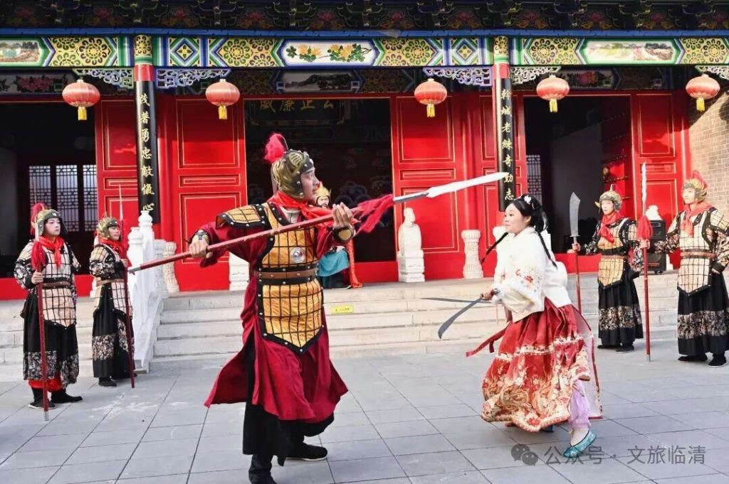 “临清自有宛园在,观景何必下江南”,宛园的静谧之美藏着浓郁的江南雅韵。如果赶上雪落时分,太湖石映着青砖灰瓦,“山、水、诗、画、园”交融的意境愈发悠远。园内亭榭自成天然舞台,晨光熹微中,互动演艺徐徐展开。